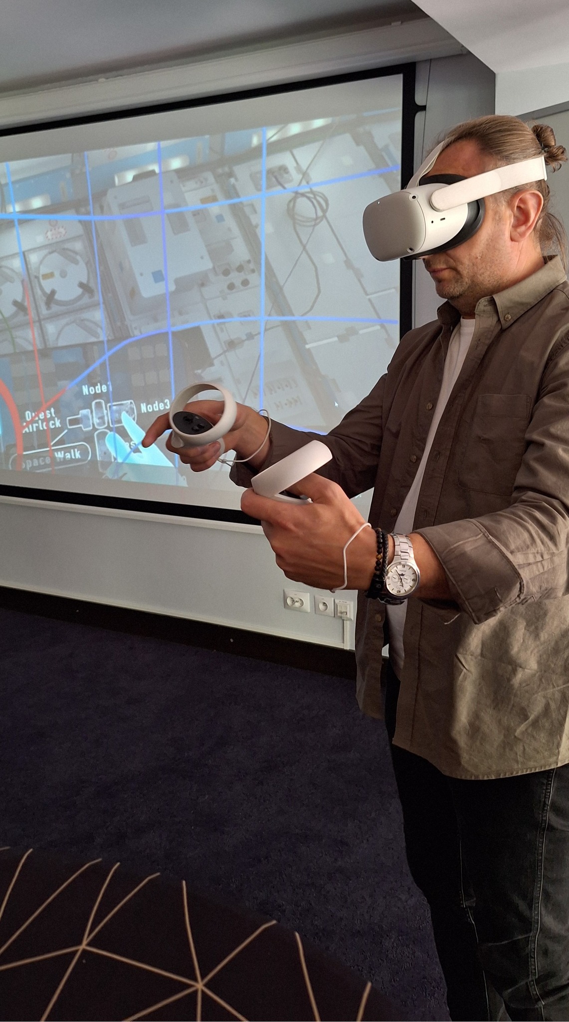 Po części oficjalnej Pani Karolina współprowadziła również szkolenie dla nauczycieli, pokazując im, jak wprowadzać technologię VR do codziennej pracy dydaktycznej.