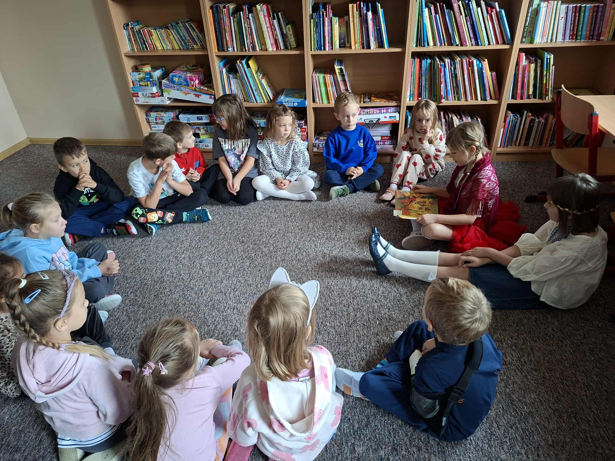 Dziś przedszkole i zerówka odwiedziła bibliotekę szkolną z okazji Ogólnopolskiego Dnia Głośnego Czytania.