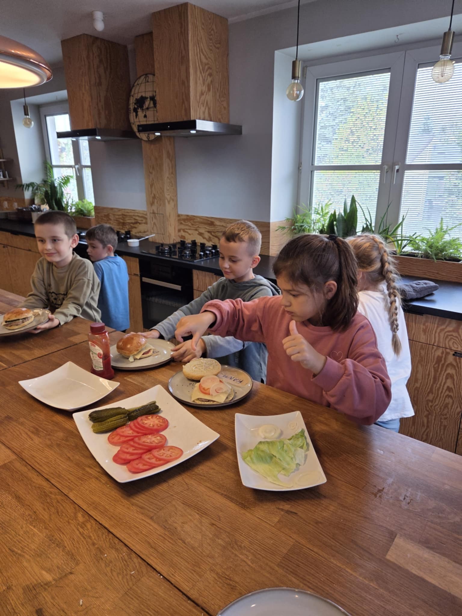 Własnoręcznie wykonane burgery zachwyciły nie tylko smakiem, ale i kreatywnością – uczniowie komponowali swoje kanapki według własnych upodobań, ucząc się przy tym zasad zdrowego odżywiania.