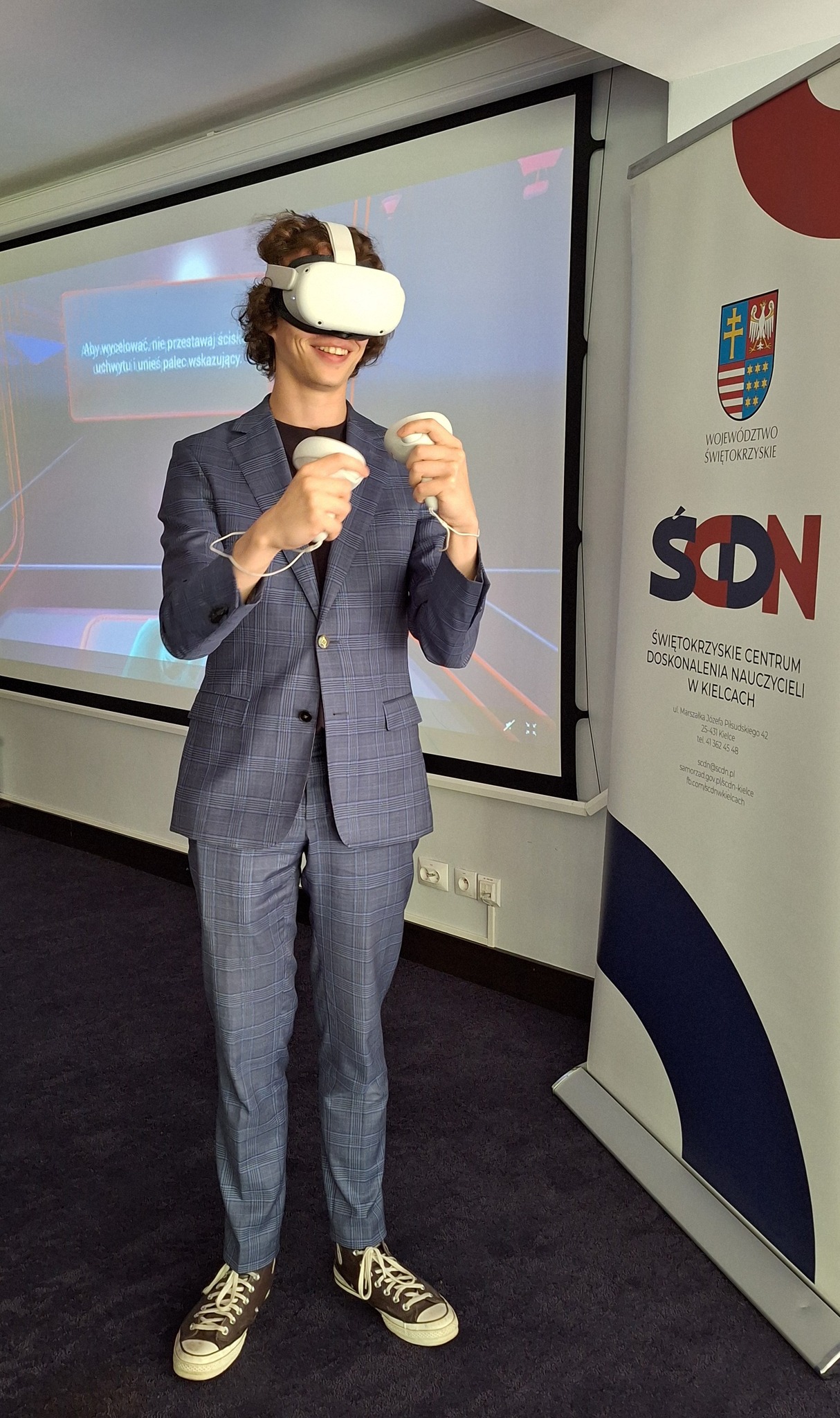 Po części oficjalnej Pani Karolina współprowadziła również szkolenie dla nauczycieli, pokazując im, jak wprowadzać technologię VR do codziennej pracy dydaktycznej.