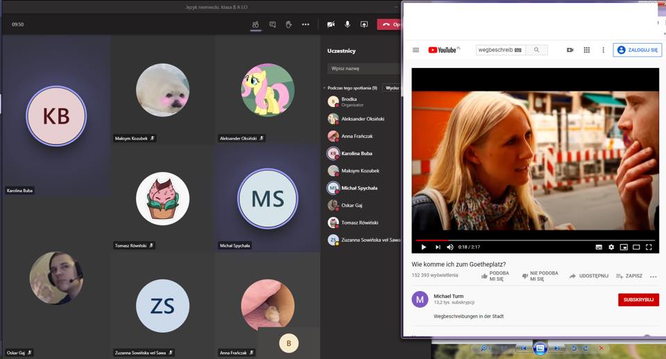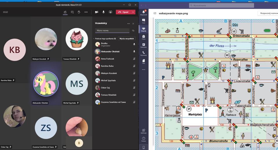 Nie straszne nam wichry i burze, ani też lekcje zdalne. Wprawdzie nie mogliśmy pospacerować po Sienkiewce i poćwiczyć wskazywania drogi, ale za to wirtualnie byliśmy w kilku odległych miejscach. Licealiści z klasy II utrwalali na dzisiejszym spotkaniu słownictwo z poruszania się po mieście. Pewnie już bez trudu objaśnią każdemu dowolną trasę po niemiecku, wykorzystując poznaną leksykę. Miejmy nadzieję, że po przerwie spowodowanej pandemią będziemy mogli przekonać się o tym już w terenie. Oby jak najszybciej!
