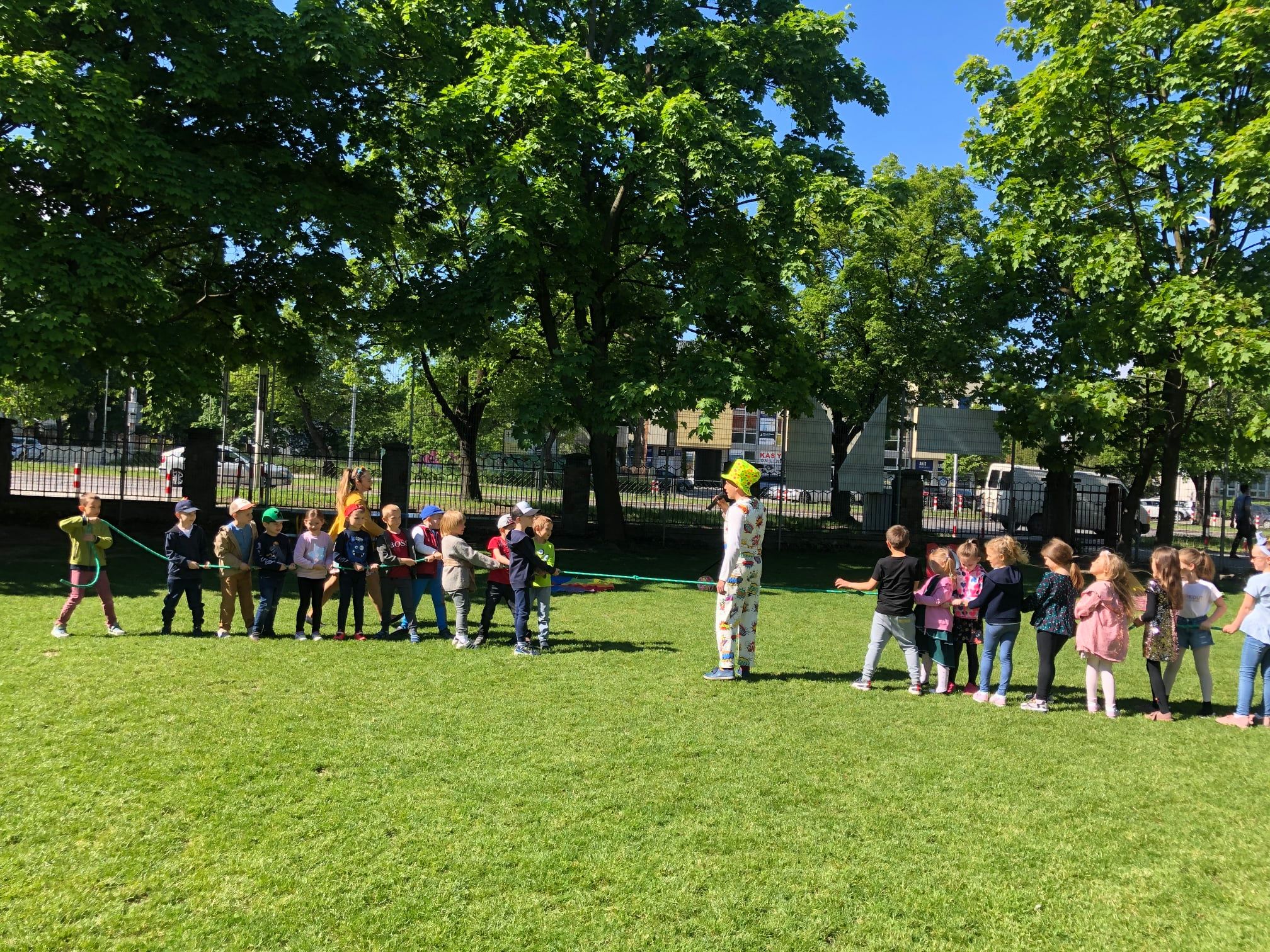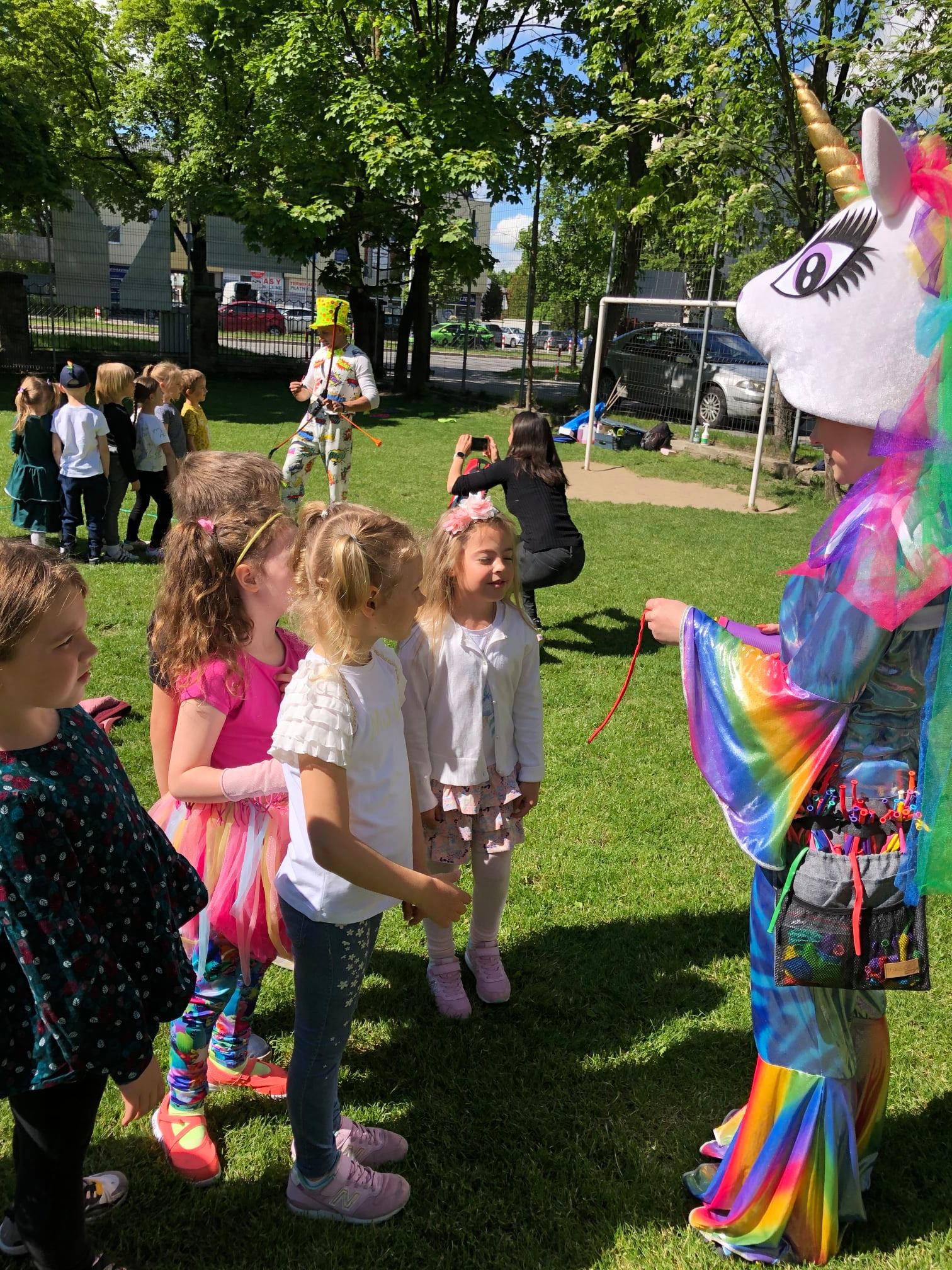 W piątek z okazji zbliżającego się Dnia Dziecka wszystkie Przedszkolaki z grup 0a i 0b bawiły się pod okiem animatorów na szkolnym placu zabaw. Dzieci strzelały do celu, przeciągały linę, tańczyły i łapały ogromne bańki mydlane. Po zakończonej zabawie każde dziecko otrzymało balon w wybranym kształcie oraz medal super dziecka.
