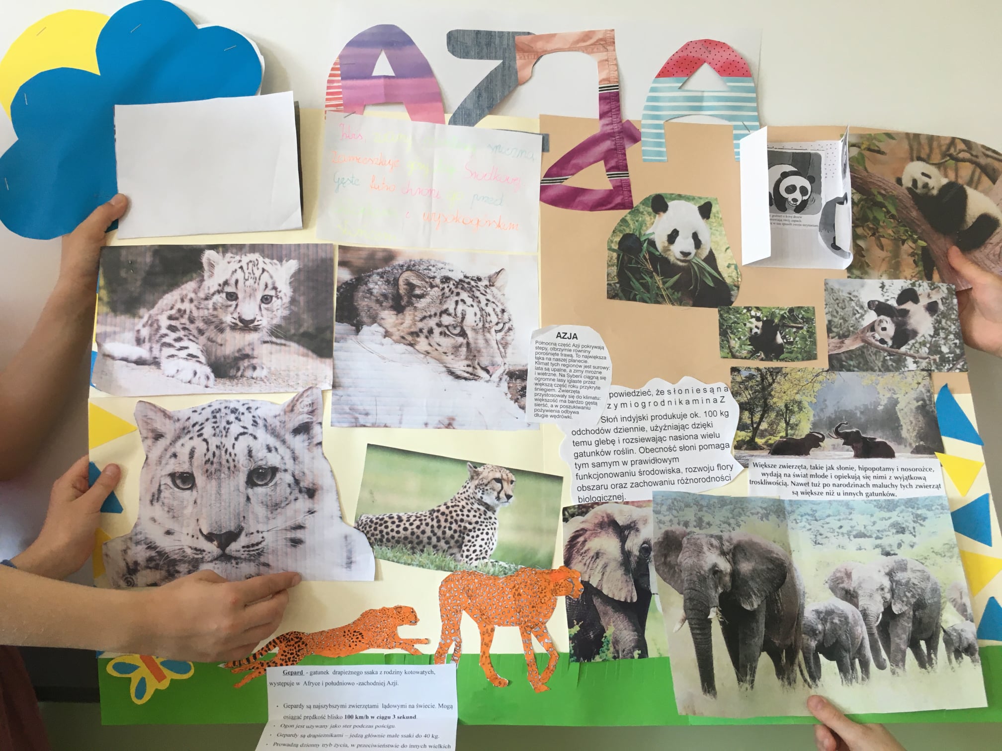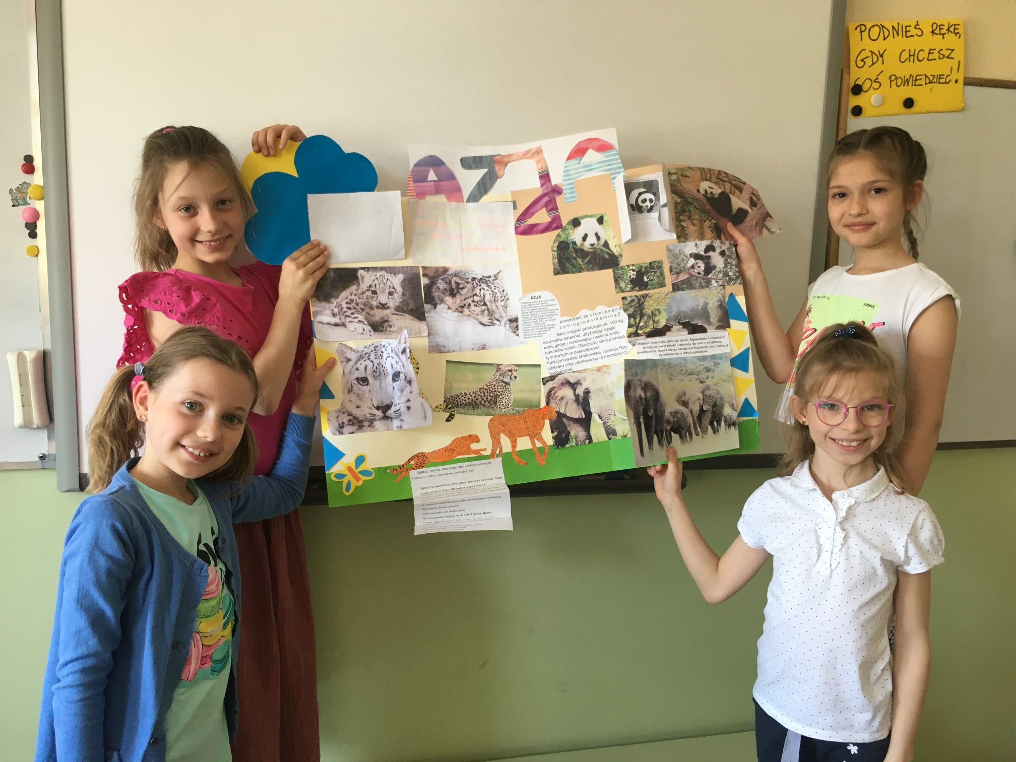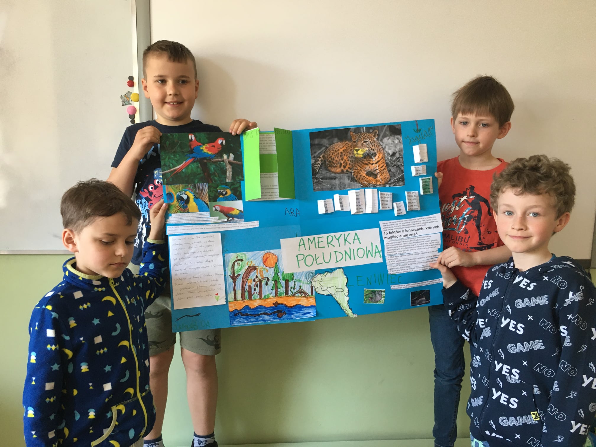 Na początku maja dzieci z klasy 2a rozpoczęły realizację tego właśnie projektu. Najpierw wspólnie z wychowawczynią ustaliły zasady pracy oraz zaplanowały kolejne etapy pracy. Kolejnym krokiem było wyłonienie pięciu czteroosobowych zespołów oraz losowanie nazw kontynentów. Te czynności były wspólne dla całej klasy. Dalej dzieci działały już w grupach, dzieląc się zadaniami, przygotowując materiały i projektując prace końcowe, widoczne na fotografiach. Zapraszamy do ich oglądania i czytania, bo jest w nich mnóstwo ciekawych informacji.