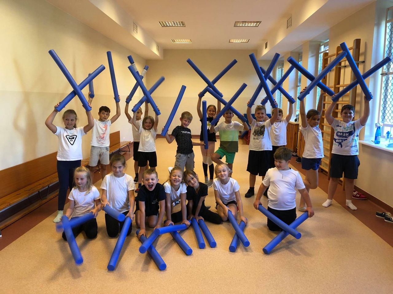 Klasa 2a poznała nowy przyrząd nietypowy ćwicząc koordynację, rytmikę, wzmacniając mięśnie kończyn i dobrze się bawiąc.