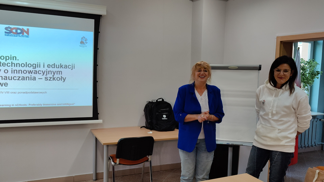 Zespół Szkół Społecznych im. M. Reja jest placówką dobrych praktyk międzynarodowego projektu „Chopin – Nauka języków obcych w szkołach: Preferencyjnie przez zanurzenie i dwujęzyczność”. Projekt jest realizowany przez Świętokrzyskie Centrum Doskonalenia Nauczycieli w Kielcach we współpracy z partnerem z Cypru, firmą C.P. SERV LIMITED z Limassol. W dniach 8-10.11.2023 odbyły się warsztaty dla nauczycieli szkół podstawowych, które dały uczestnikom możliwość poznania praktycznych zastosowań wirtualnej rzeczywistości w kontekście nauczania dwujęzycznego. Sesje były prowadzone przez trenerów C.P. Serv Limited oraz konsultantów ŚCDN m.in. panią Izabelę Krzak Borkowską. Nauczyciele zapoznali się z nowo opracowanymi materiałami edukacyjnymi. Są one zgodne z metodą immersyjną i opierają się na koncepcji edukacji dwujęzycznej. Scenariusze lekcji dostosowane są do wieku ucznia i obejmują swoją tematyką historię i kulturę państw członkowskich Unii Europejskiej. Doświadczenia z wirtualnej rzeczywistości, dostępne poprzez aplikację na urządzeniu Oculus, były testowane przez uczniów naszej szkoły oraz nauczycieli biorących udział w warsztatach. W projekcie Chopin wzięło udział blisko stu nauczycieli z regionu Świętokrzyskiego, co świadczy o szerokim zainteresowaniu tą nowatorską tematyką.