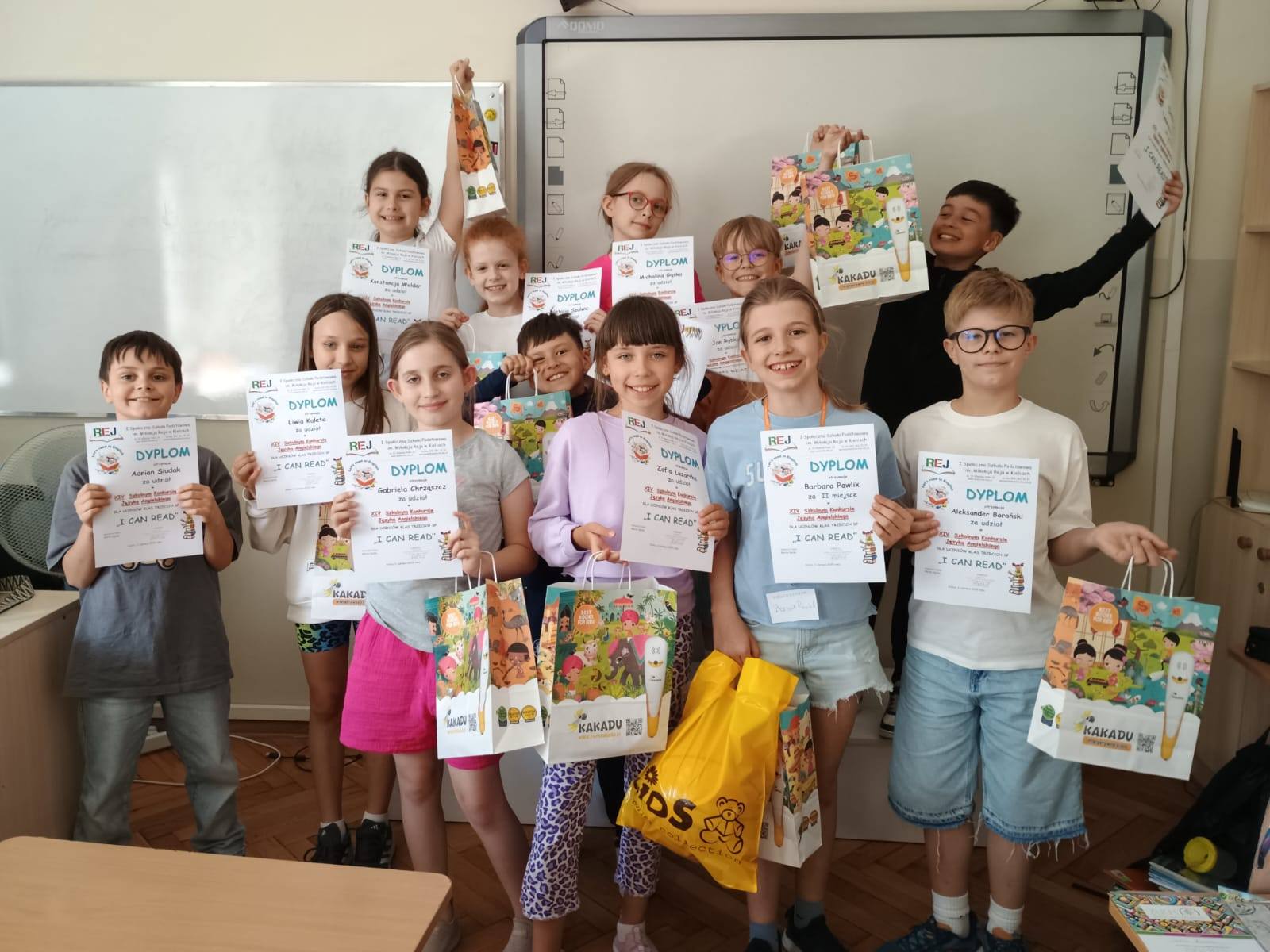 3 czerwca 2025 r. odbył się już XIV Szkolny Konkursu Języka Angielskiego „I CAN READ” dla klas trzecich I SSP. Konkurs miał na celu rozbudzanie wśród uczniów klas trzecich zainteresowań językiem angielskim, poszerzanie ich znajomości tego języka, zachęcenie do lektury w obcym języku, a przede wszystkim zaproszenie dzieci do wspólnej zabawy. Polega on na napisaniu testu językowego, opartego na treści oraz słownictwie z sześciu książek z serii Storytime wydanych przez wydawnictwo Express Publishing: The Ant & the Cricket,Snow White & the Seven Dwarfs, Little Red Riding Hood, The Little Mermaid,Hansel & Gretel Cinderella. Każdą z tych książek (w języku angielskim) już od początku bieżącego roku uczniowie mogli wypożyczać w szkolnej bibliotece. Warunkiem przystąpienia do konkursu było przeczytanie wszystkich sześciu książeczek i oddanie nauczycielowi przygotowanych do nich ćwiczeń w wyznaczonym terminie. W konkursie wzięło udział aż 25 uczniów z klas trzecich. Niezwykle cieszy tak wysoka frekwencja i zainteresowanie konkursem.