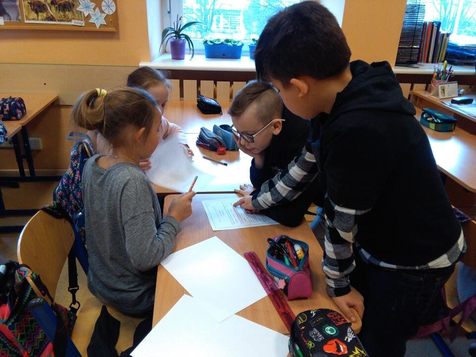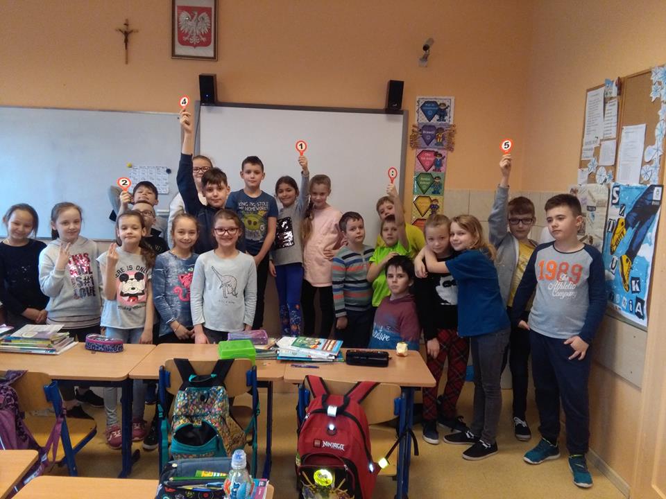 Podczas omawiania książki Cz. Centkiewicza „Anaruk, chłopiec z Grenlandii” dzieci z kl. 3b pokonywały prawdziwy „lodowy tor przeszkód”, w dodatku rywalizując w grupach. Były zadania matematyczne, ortograficzne i gramatyczne. Trzeba się było też wykazać doskonałą znajomością lektury i rozwiązać quiz. Najwięcej emocji było podczas zabawy ortograficznej „biegające dyktando o Arktyce” i w trakcie redagowania listu do głównego bohatera lektury. Po podsumowaniu punktów wszyscy otrzymali drobne upominki, przygotowane przez panią oraz… 6 do dziennika!