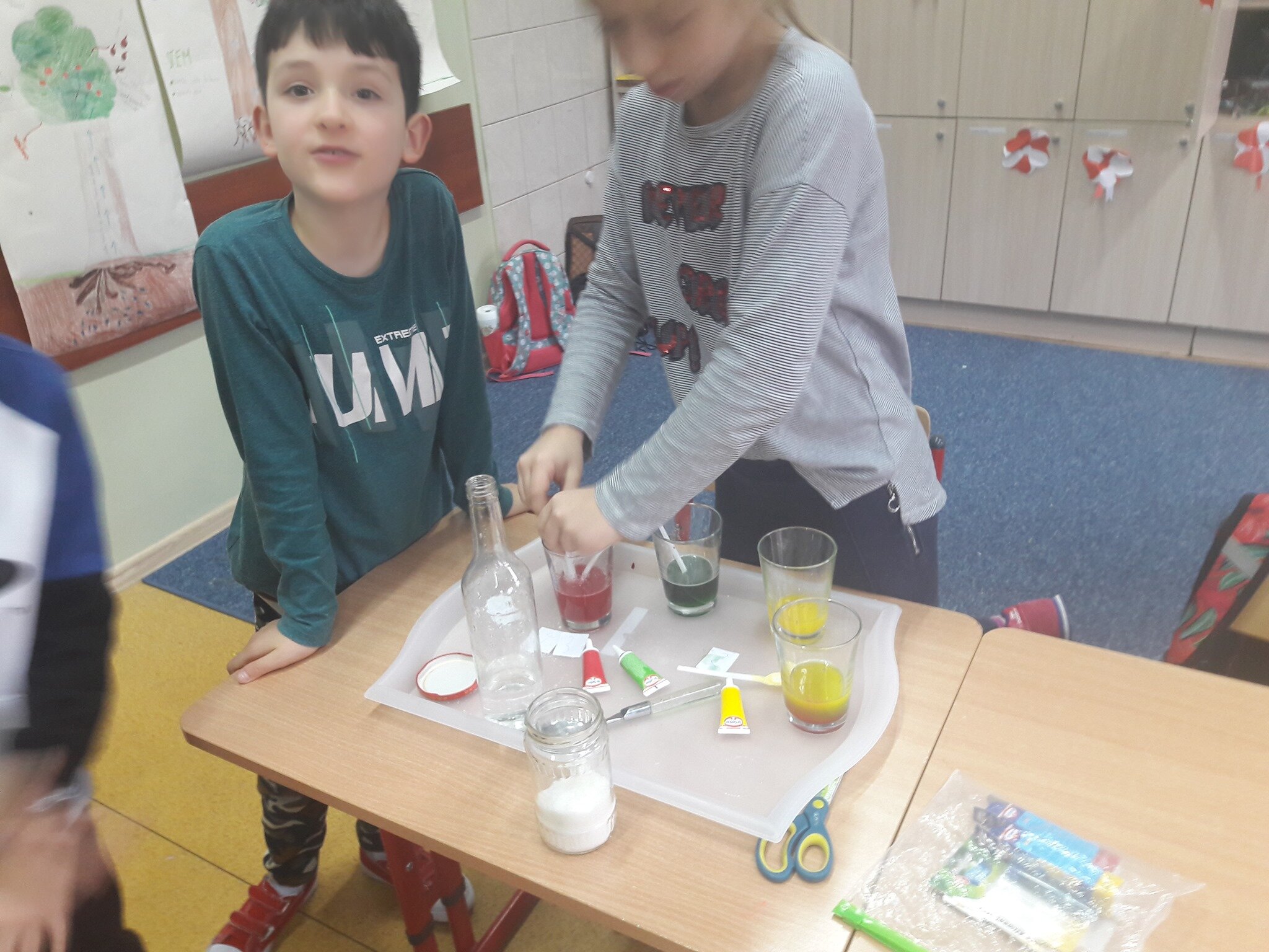 W tym tygodniu podczas zajęć "Nauka przez doświadczenie" uczniowie klas 3 dowiedzieli się co to jest katalaza i jak zrobić kolorowe, warstwowe "drinki"Uśmiech. Było SUPER kolorowo!