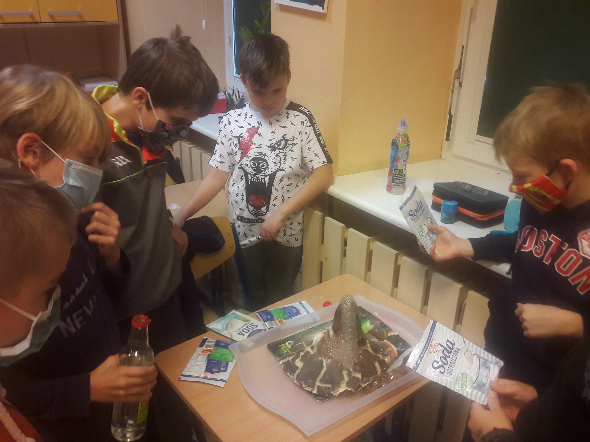 Zajęcia "Nauka przez doświadczenia" to nie tylko zdobywanie wiedzy, ale także świetna zabawa. Przekonali się o tym uczniowie klas trzecich, którzy zbudowali wulkany i przy pomocy sody i octu dokonali "wielkich wybuchów". Było SUPER!!!!