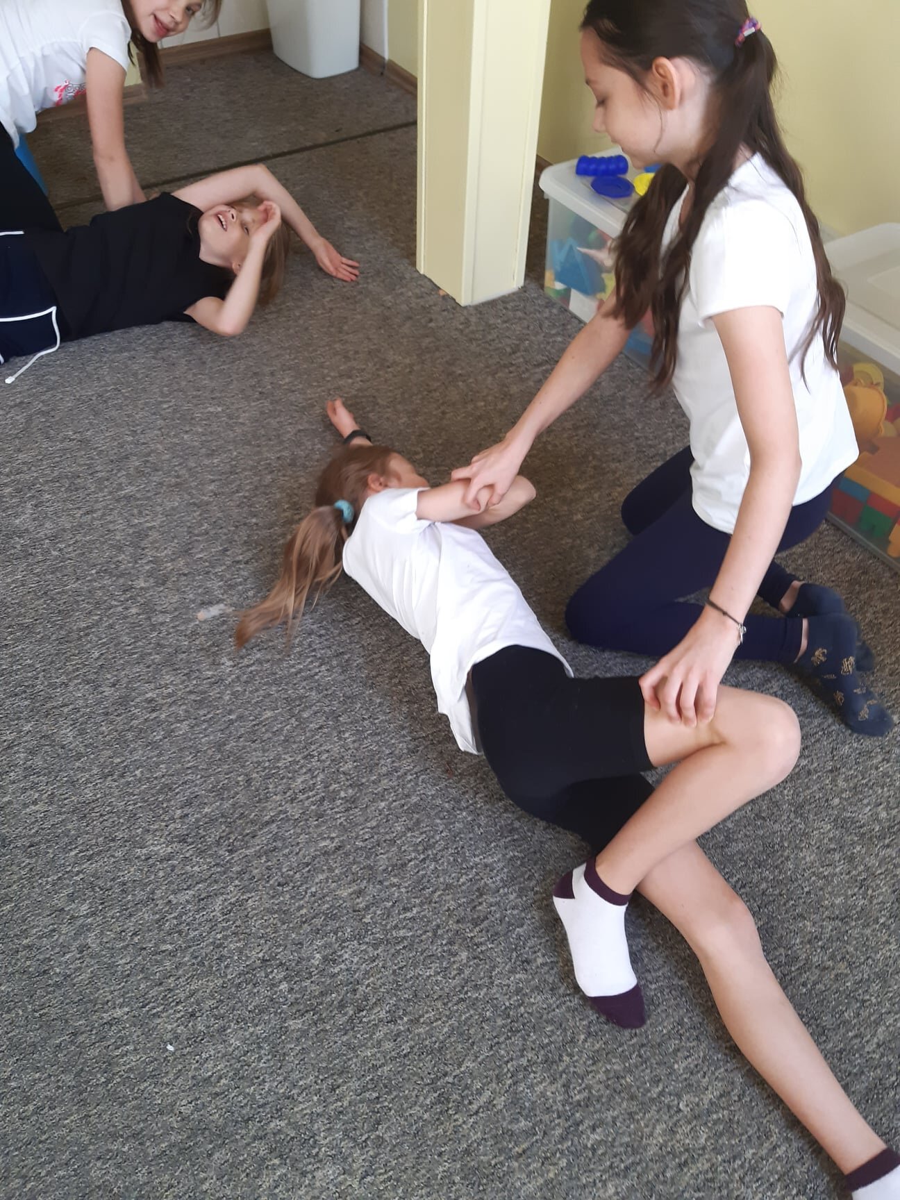 Ostatnie zajęcia wychowania fizycznego w klasach 0-4 dotyczyły pierwszej pomocy przedmedycznej. Przypomnieliśmy sobie zasady oceny miejsca zdarzenia pod kątem bezpieczeństwa osoby ratującej